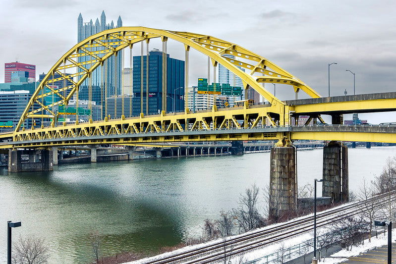 The Fort Pitt Bridge, opened in 1959, spans the Monongahela River and connects downtown Pittsburgh to the South Side. Known for its yellow color and steel arch design, it’s one of the city's most recognizable bridges. Named after Fort Pitt, a historic fort from the 18th century, the bridge plays a crucial role in Pittsburgh’s transportation network, offering stunning views of the city's skyline and rivers.